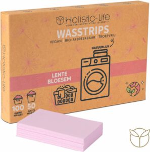 De Holistic-Life Wasstrips zijn volledig vegan, plasticvrij verpakt en biologisch afbreekbaar. Ze wassen schoon, maken kleding zacht en hebben een subtiele lentebloesemgeur. Ideaal voor wie bewust en duurzaam wil wassen.
